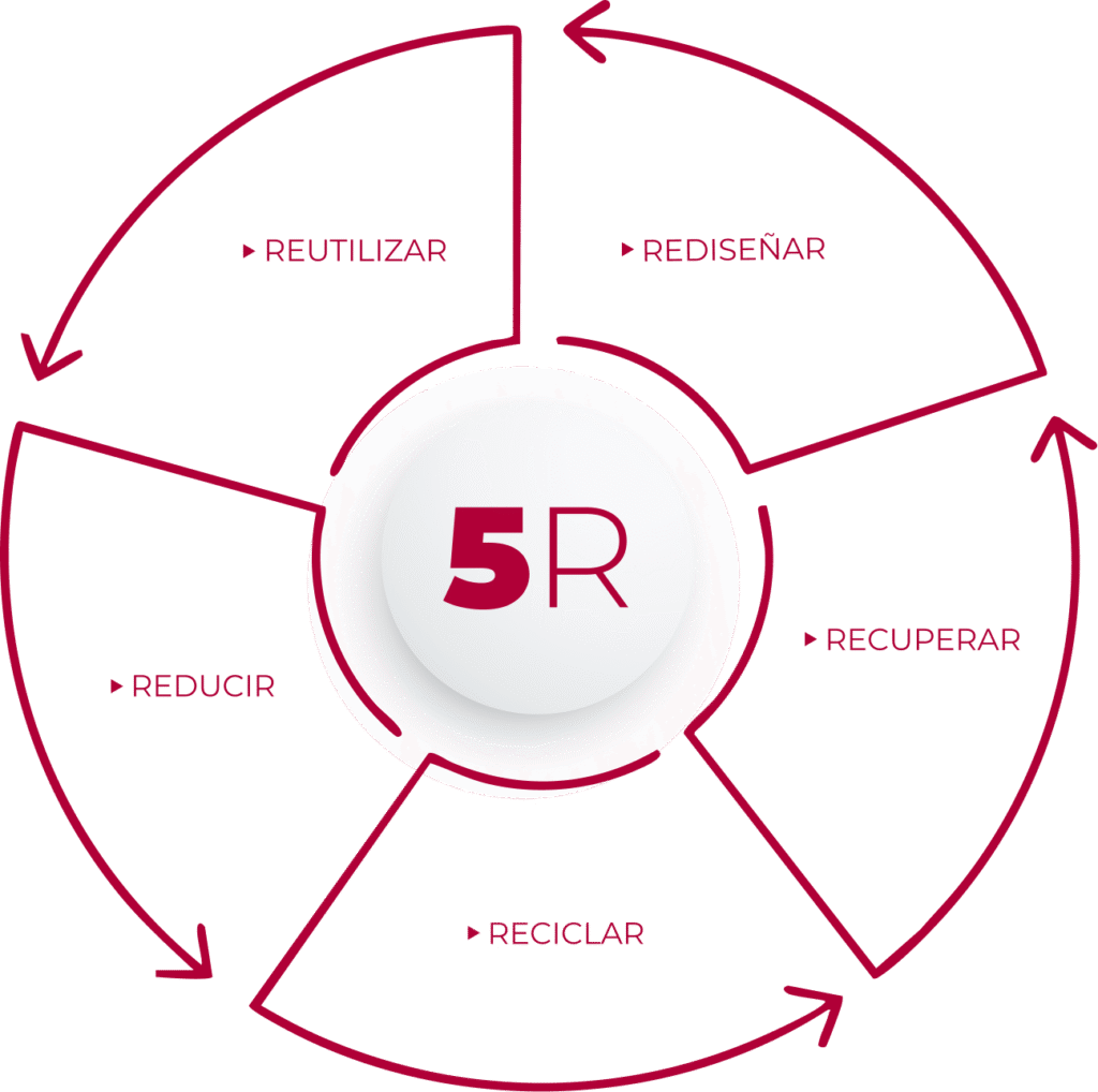 Esta línea se inspira en la filosofía 5R: Reducir, Reutilizar, Reciclar, Recuperar y Rediseñar, buscando que cada producto forme parte de un ciclo más responsable y eficiente.